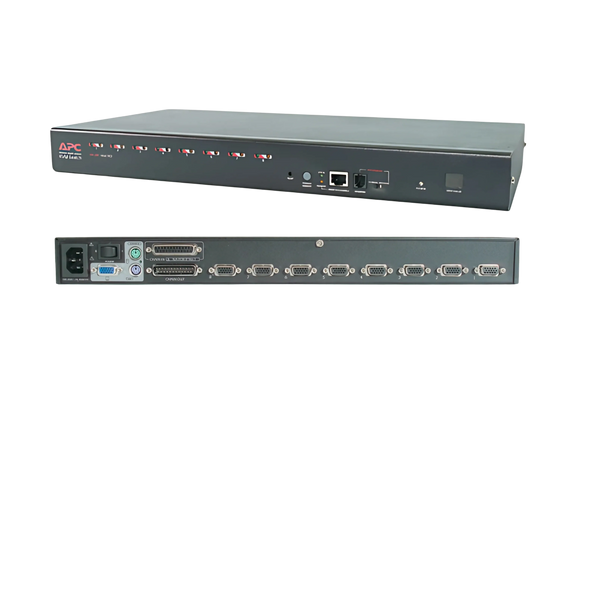 Switch KVM de 8 puertos marca APC modelo AP501 de 1U para Rack.